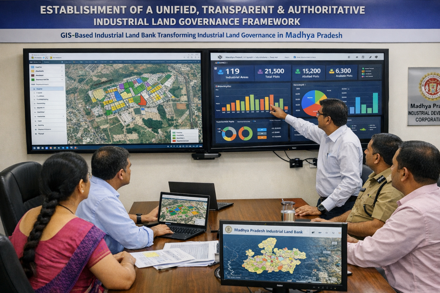 The GIS-Based Industrial Land Bank digitized 119 industrial areas in Madhya Pradesh, creating a transparent, technology-driven system that accelerated investments and set a benchmark for industrial growth