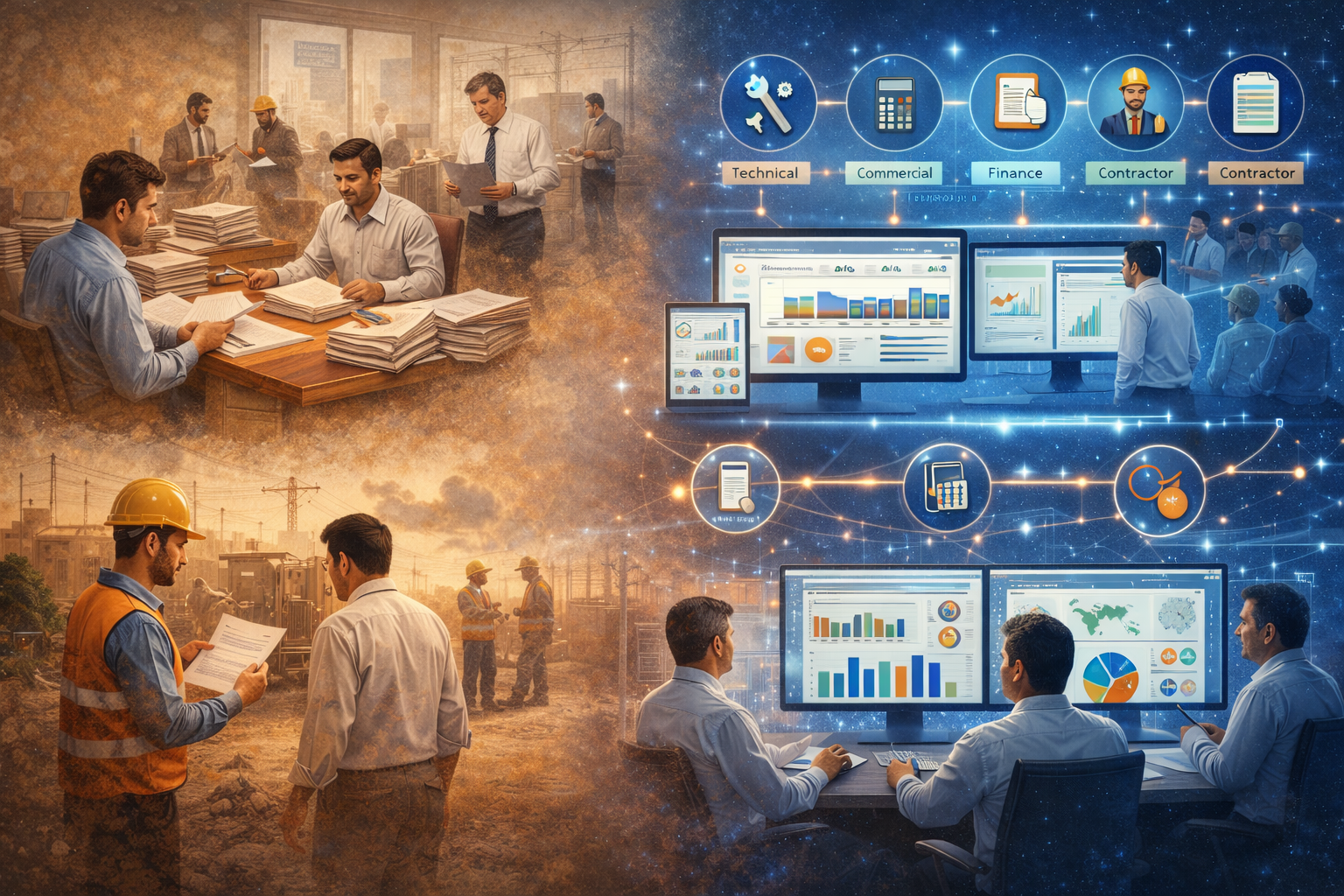 Disconnected workflows between technical, commercial, finance, and contractor units resulted in inefficiencies and delays in estimate preparation, execution, and approvals.